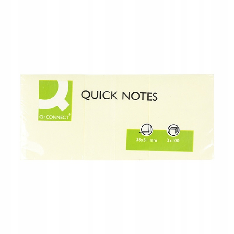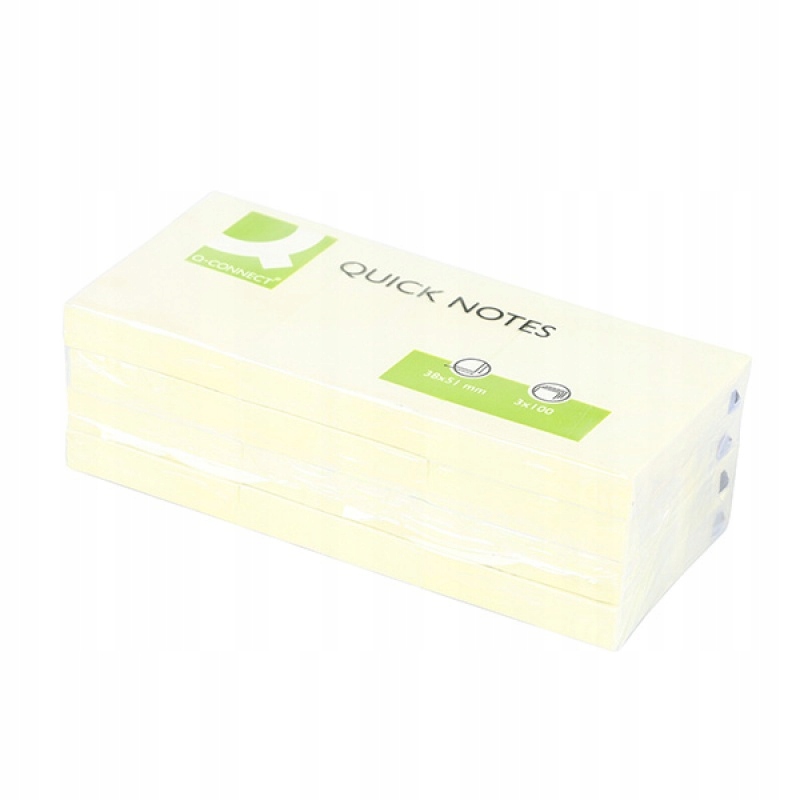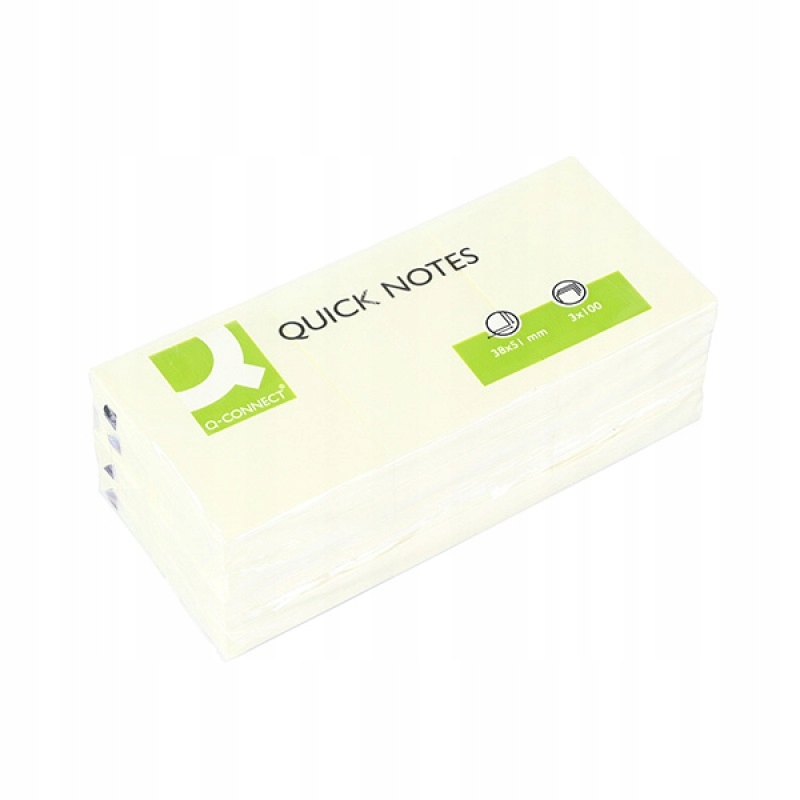 BLOCZEK SAMOPRZYLEPNY Q-CONNECT, 38X51MM, 3X100 KART., JASNOŻÓŁTY