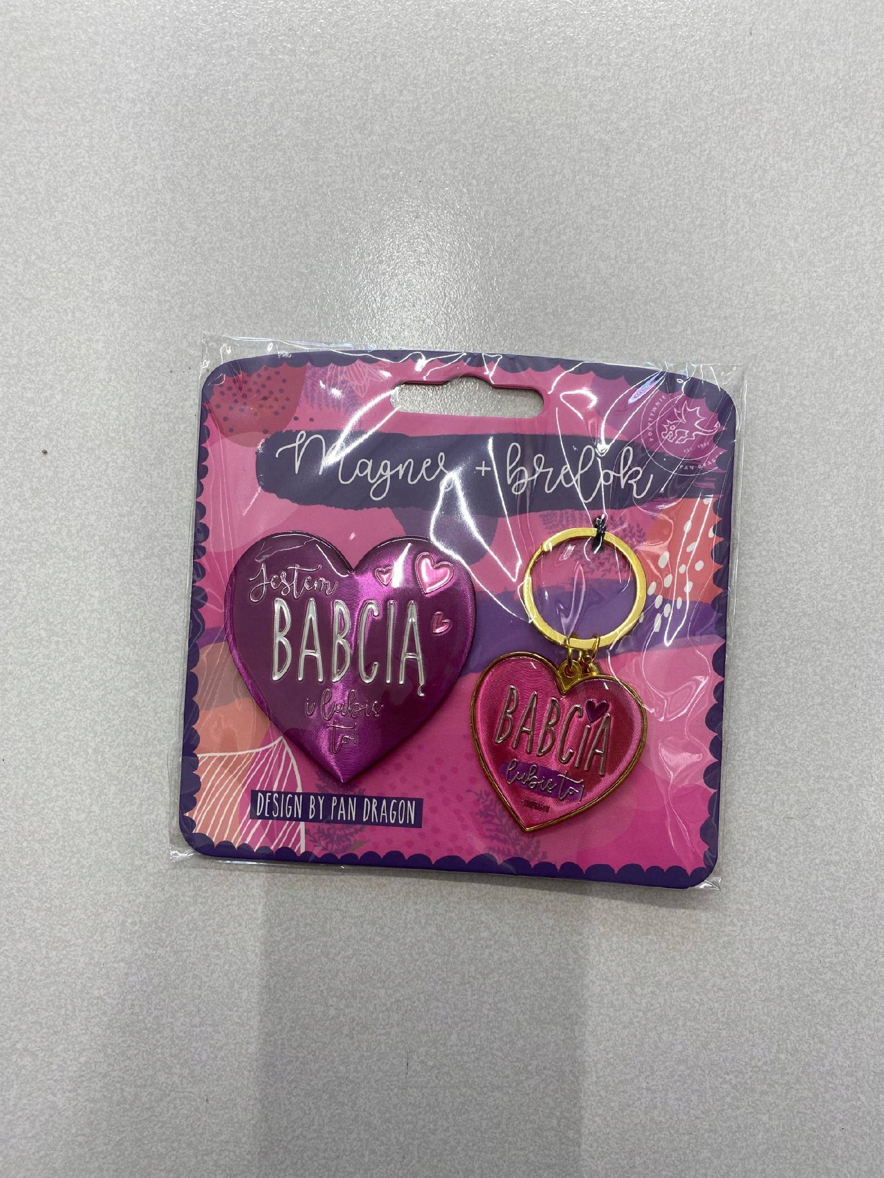 Ozdobny zestaw magnes + brelok dla Babci na blistrze.