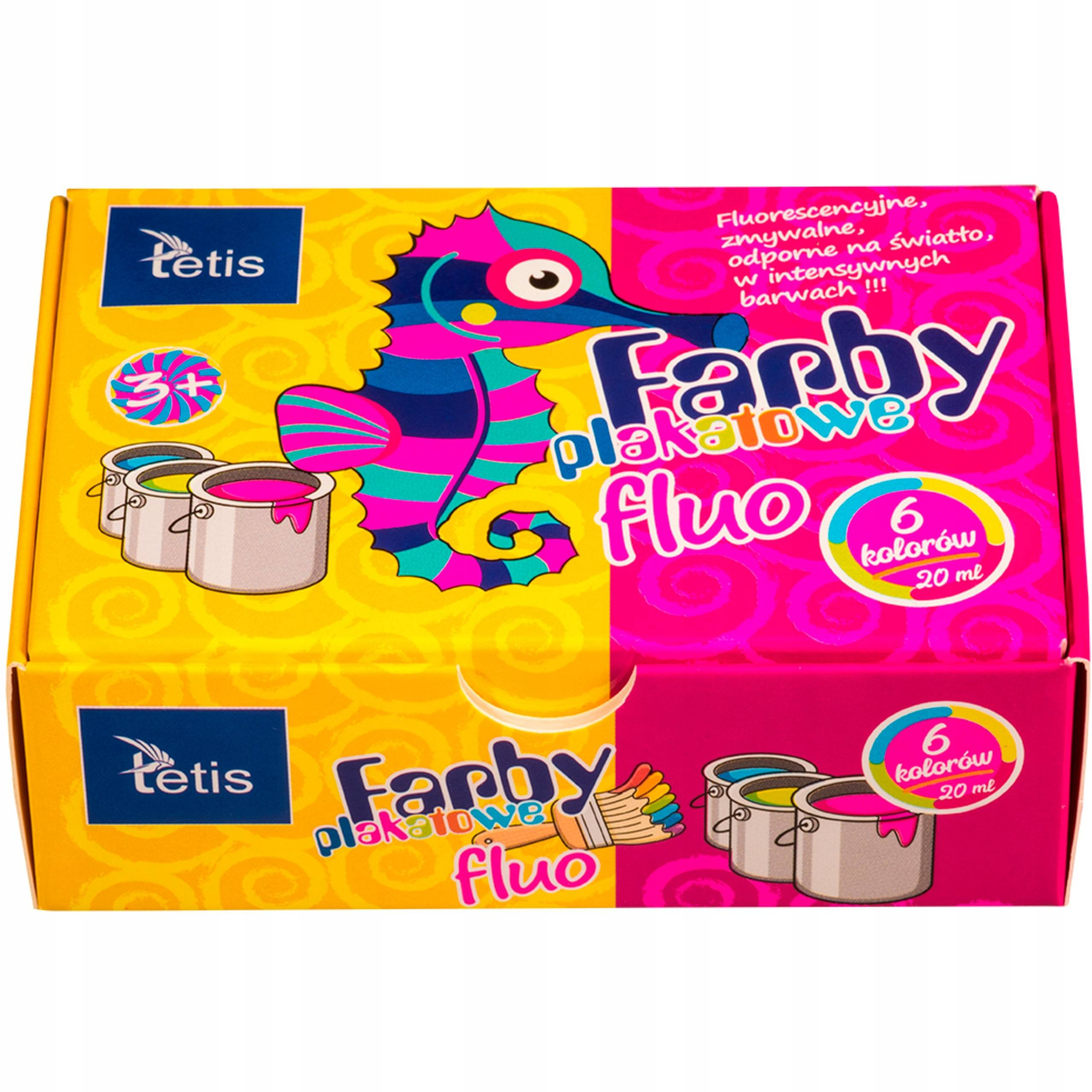 Farby plakatowe Tetis KF001 Fluo w 6 kolorach.