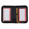 Główna komora piórnika zamykana na zamek a organizer umieszczony na dwóch wewnętrznych klapach oraz części środkowej piórnika.