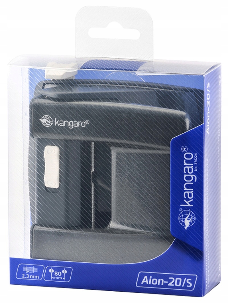 DZIURKACZ KANGARO AION-20/S, DZIURKUJE DO 20 KARTEK, METALOWY, W PUDEŁKU PP, METALICZNY SZARY