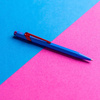 - długopis w specjalnym opakowaniu typu slimpack z naklejką, która informuje nas jaki kolor długopisu znajduje się w środku