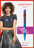- przyciskowy mechanizm wysuwu wkładu w kolorze fioletowym i bardzo solidny klips w czerwonym kolorze
