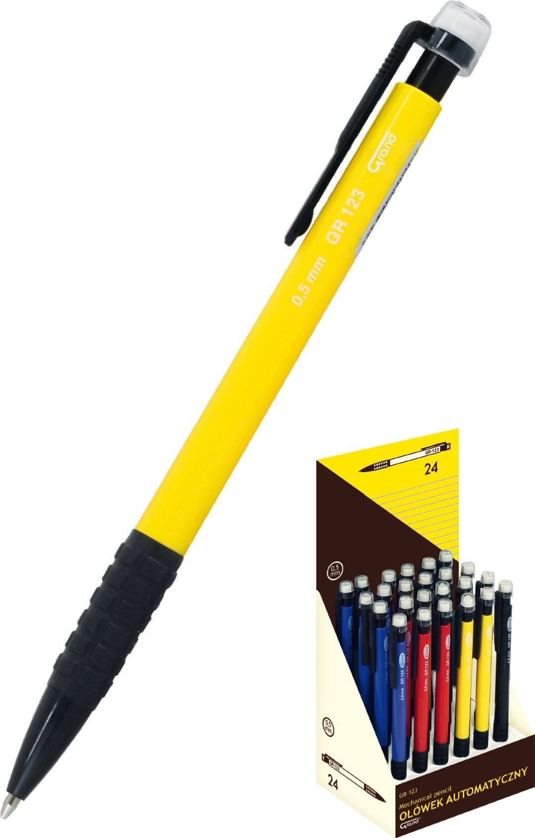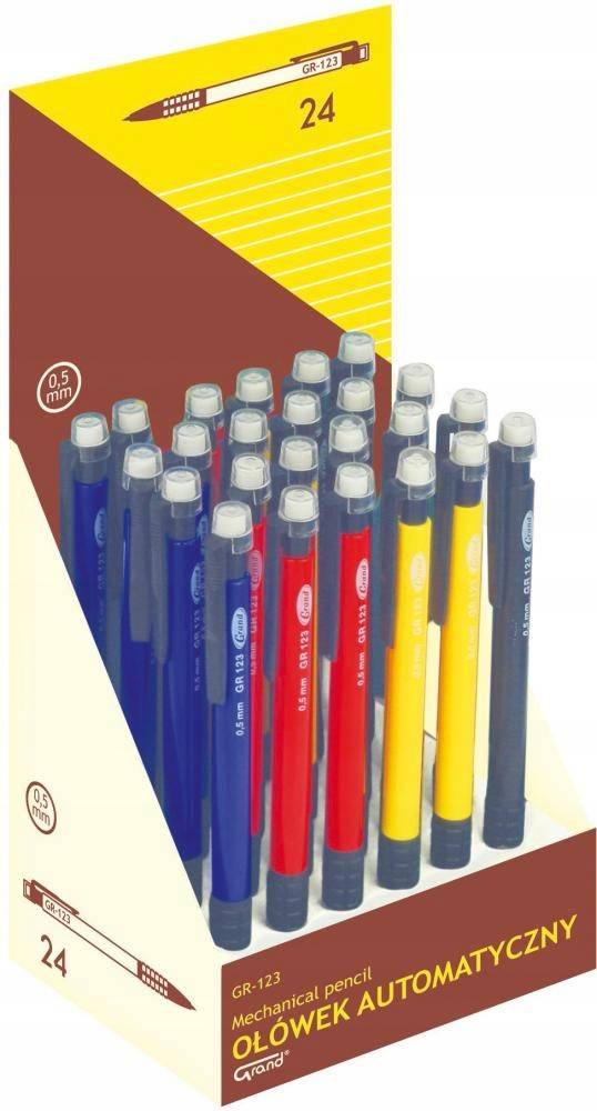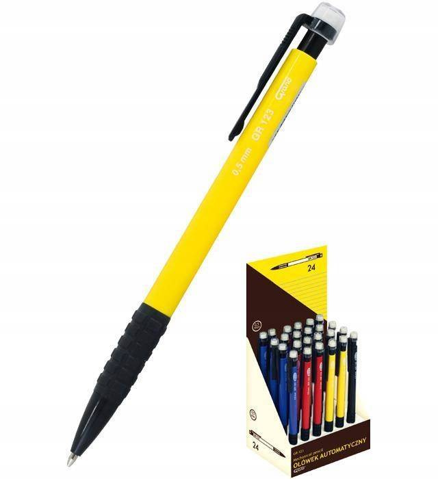 – z gumką – na grafity 0,5 mm – ergonomiczna obudowa z uchwytem antypoślizgowym – indywidualny kod kreskowy w formie naklejki usuwalnej bez śladu – opakowanie: 24 szt.