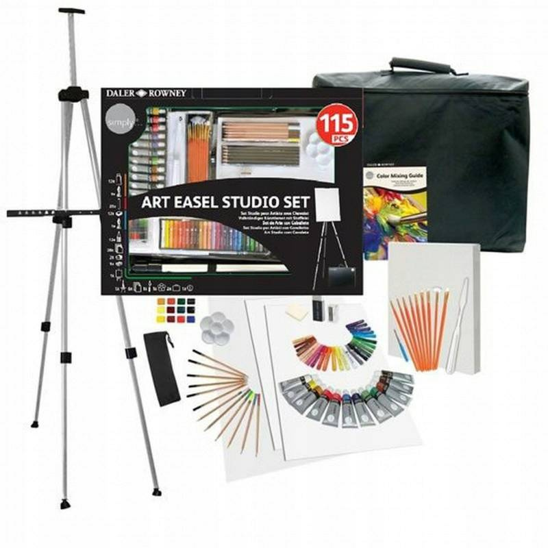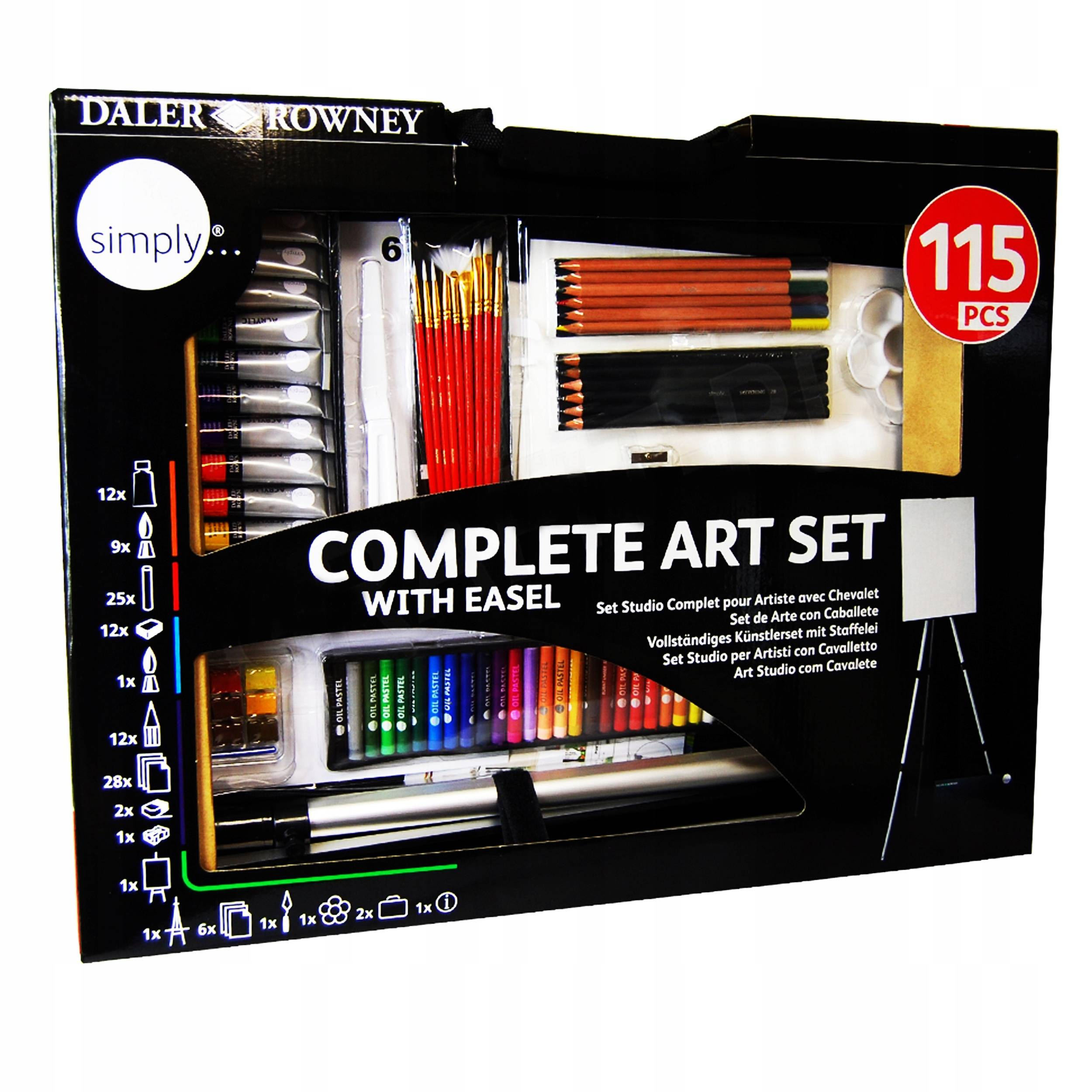 Kompletny zestaw artystyczny ze stojakiem znanej angielskiej marki Daler-Rowney.