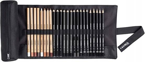 1 ołówek biały olejowy, 1 ołówek biały suchy, 1 ołówek suchy sanguina, 1 olejek sanguina, 1 ołówek suchy sepia, 1 ołówek olejowy sepia, 1 ołówek olejowy ciemna sepia, 1 suchy ołówek ciemna sepia, 1 pastel akwarelowy grafitowy 8B, 1 akwarelowy pastel grafitowy 4B, 1 akwarelowy grafitowy pastel HB, 1 ołówek węglowy 2B, 1 ołówek węglowy HB, 1 ołówek węglowy H, 1 ekstra czarny ołówek węglowy 2B, 1 ekstra czarny ołówek węglowy HB, 1 dodatkowy czarny ołówek węglowy H, 1 ołówek węglowy 2B, 1 ołówek węglowy HB, 1 Grafit F, 1 Grafit B, 1 Grafit 2B, 1 Grafit B, 1 Grafit 4B, 1 Grafit 6B.