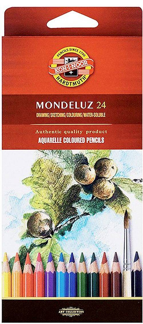 Zestaw 24 kredek akwarelowych w pudełku. Kredki służą do wykonywania klasycznych rysunków, a także do uzyskiwania efektu akwareli. Po naniesieniu pędzelkiem wody, rysunek można rozmywać uzyskując efekt obrazu namalowanego farbami akwarelowymi.