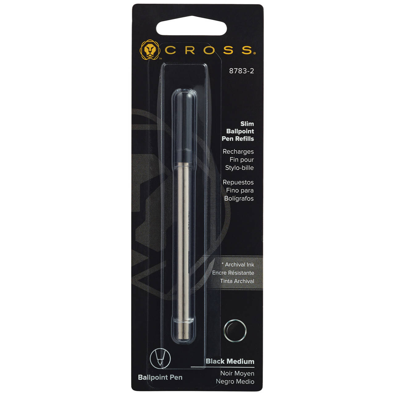 Wkład do długopisów Cross w kolorze czarnym. Szerokość pisania M. Wersja slim. Wkłady dostępne w kolorach: czarny i niebieski. Wkład kompatybilny z modelami długopisów Cross Click i Cross Classic Century.