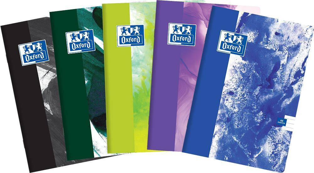 Kolekcja Oxford Paint została zaprojektowana z myślą o malarstwie różnymi technikami. Na każdej okładce widoczny jest inny kolor, który sprawia wrażenie jakby został naniesiony pędzlem lub rozmyty w wodzie. Kolekcja dedykowana jest uczniom starszych klas, szczególnie pasjonatom rysunku i malarstwa. Matowe wykończenie okładek nadaje wyjątkowej elegancji. Wysoka jakość Oxford zapewnia zeszytom wytrzymałość, dzięku czemu będą towarzyszyły uczniom przez cały rok szkolny.