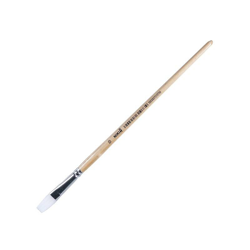 - Płaski pędzel, którego trzon wykonany jest z naturalnego drewna, lakierowanego przezroczystym matowym lakierem UV