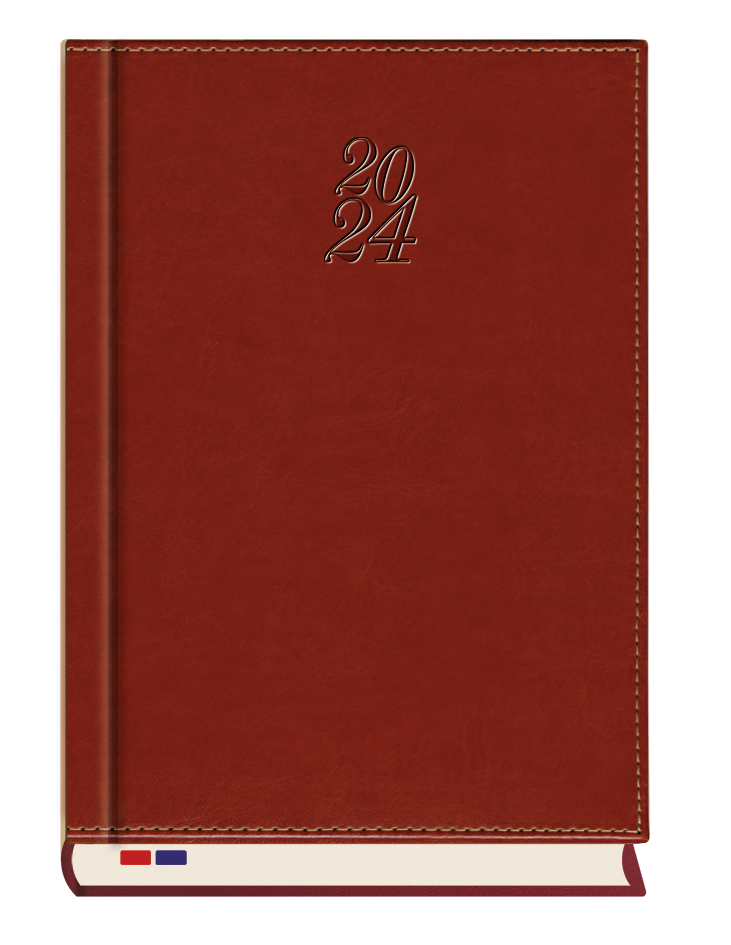 format: A4 (205 x 285 mm) układ kalendarium: 1 tydzień - 2 strony ilość stron: 144 druk: 2 kolory rodzaj papieru: offset 70 g/m2 kremowy Oprawa - skóropodobna kombinowana, wycięty register dwuprzebiegowy, dwie tasiemki, perforowane narożniki