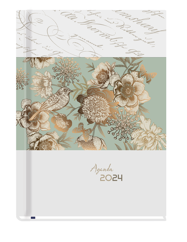 Terminarz tygodniowy w formacie A5 - kalendarium: 1 tydzień - 1 strona + strona na notatki ilość stron: 144 druk: 2 kolory Oprawa - twarda, okładka barwna foliowana, jedna tasiemka.