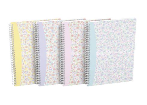 - Podwójna biała spirala zapewnia, że notatnik leży perfekcyjnie płasko po otwarciu. Kartonowa okładka z laminatem Soft Touch w różnych kwiecistych wzorach