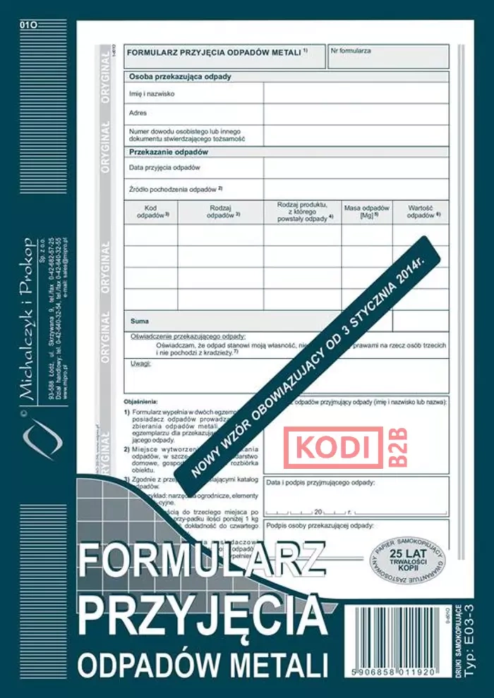 FORMULARZ PRZYJĘCIA ODP.METALI E03-3 M&P