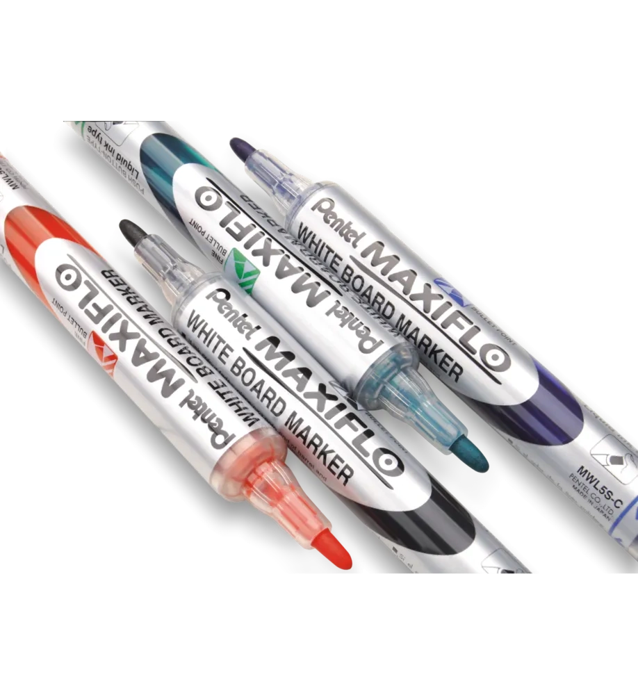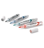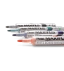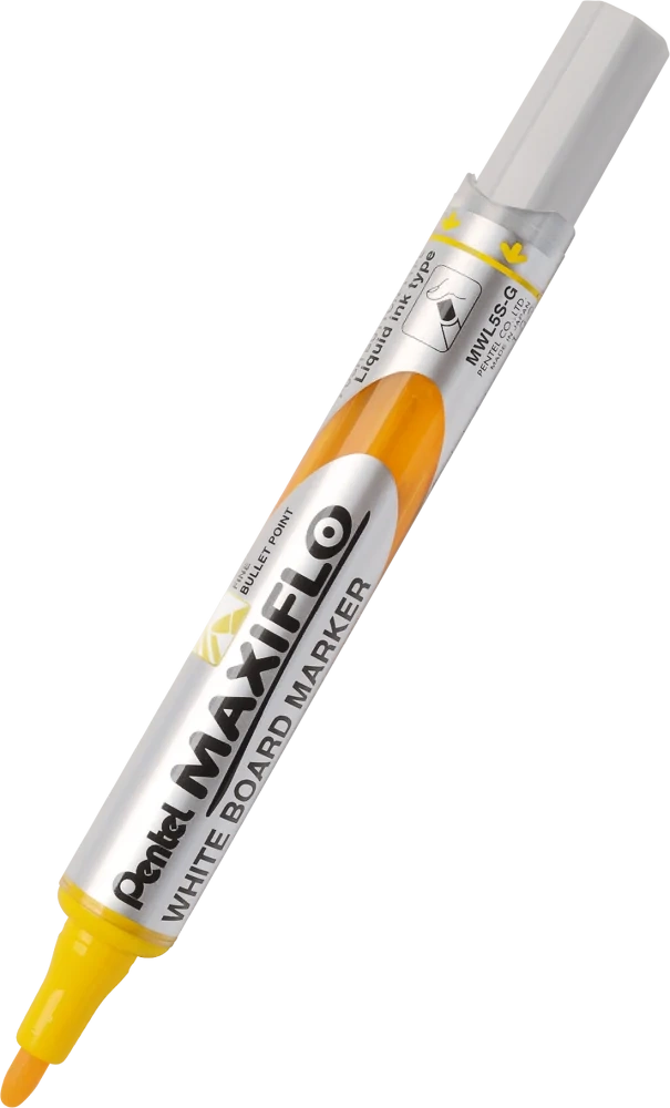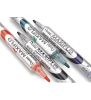 Marker do białych i ceramicznych tablic. Płynny tusz dozowany w razie konieczności nawilżenia końcówki za pomocą tłoczka (zamiast tradycyjnego sączka). Marker pisze wyrazistą linią aż do ostatniej kropli tuszu. Kilkakrotnie dłuższa linii pisania niż w standardowych markerach z sączkiem - 1200 m. Nie zawiera substancji trujących ksylenu ani toluenu. Nadaje się na papier, plastik, karton, tablice suchościeralne.
