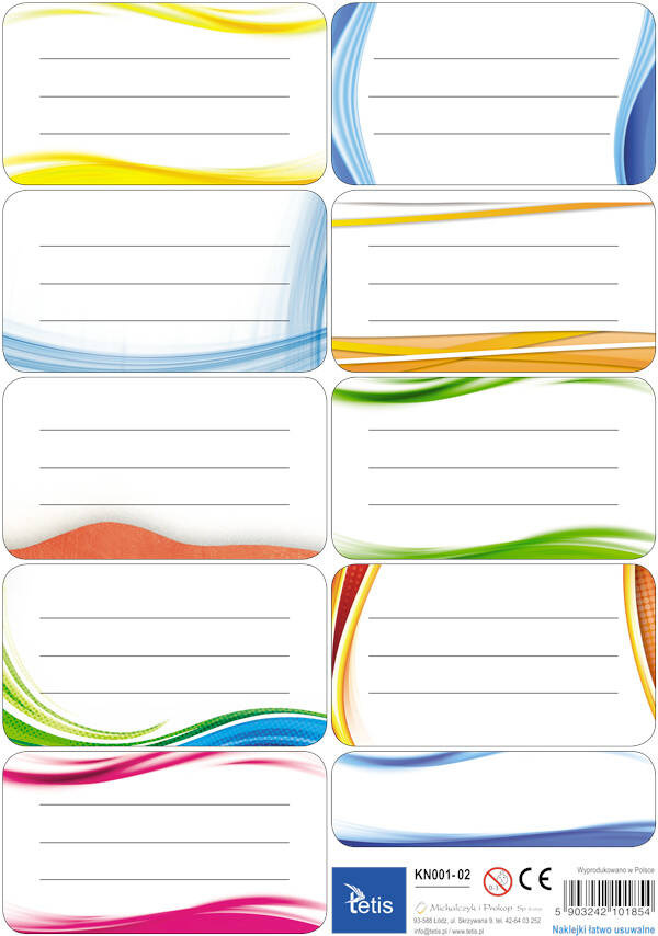 Naklejki na zeszyty i książki - łatwo usuwalne. Na arkuszu znajduje się 9 etykiet.