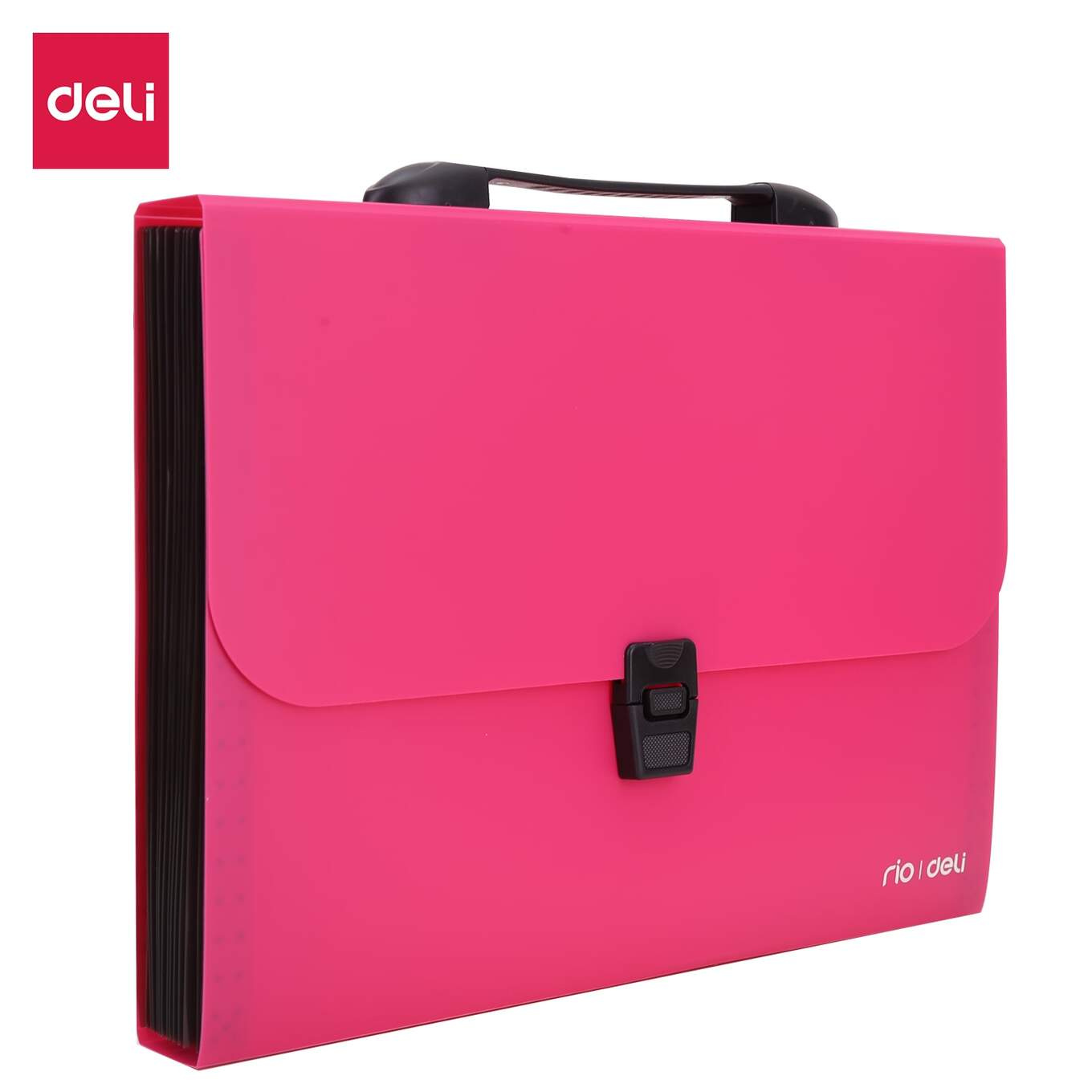 • TECZKA Z RĄCZKĄ CZARNĄ DELI A4 13-PRZEGRÓDEK SERIA RIO RÓŻOWA