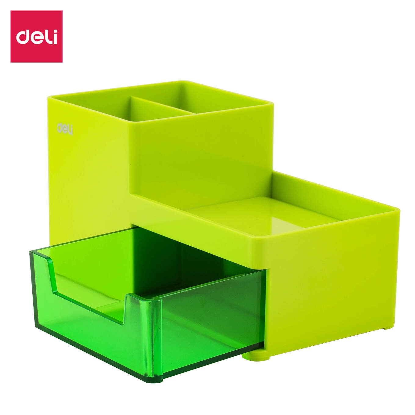 Ten zielony organizer na biurko o wymiarach 175 x 90 x 92 mm to designerskie połączenie minimalistycznej formy z energetycznym kolorem. Wykonany z trwałych materiałów, gwarantuje długą żywotność. Idealnie sprawdzi się zarówno w pracy, jak i w domu, dzięki licznych przegrodom, które umożliwiają przechowywanie niezbędnych przyborów. Dodatkowo, posiada zamykaną szufladę, pomagającą w organizacji miejsca pracy i zachowaniu porządku. Dzięki solidnemu opakowaniu z grubą folią zabezpieczającą o aksamitnym wykończeniu oraz opakowaniu jakim jest karton, produkt dotrze do Ciebie w nienaruszonym stanie.