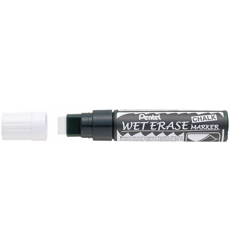 Marker kredowy z grubą końcówką. Produkt wybierany przez restauratorów (do ekspozycji menu), przedsiębiorców, właścicieli barów, sklepów i komisów samochodowych. Tusz po wyschnięciu jest odporny na lekkie opady deszczu. Idealny do wykonywania ozdób i dekoracji świątecznych na szkle i szybach. Dostępny w 8 kolorach tuszu: czarnym, czerwonym, niebieskim, zielonym, pomarańczowym, żółtym, fioletowym, białym.