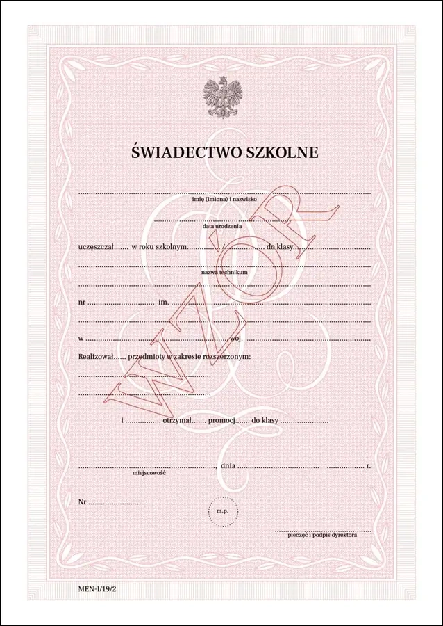 Świadectwa szkolne promocyjne dla uczniów technikum
