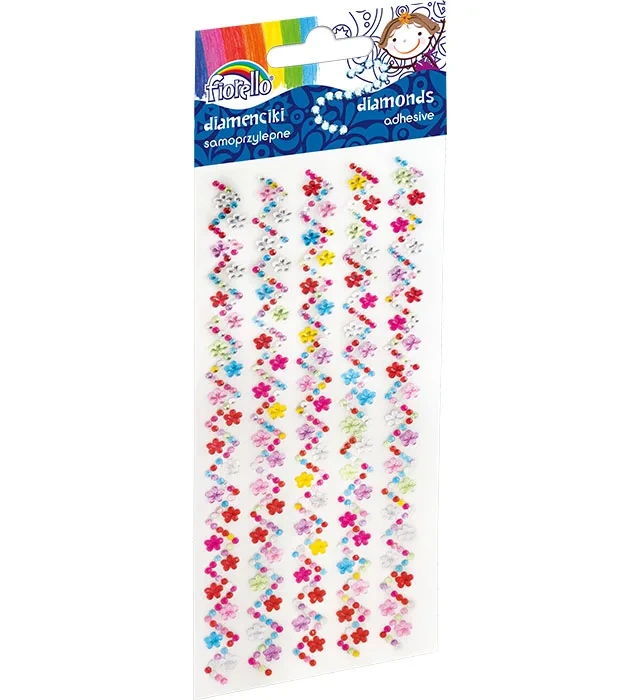 – błyszczące diamenciki samoprzylepne w różnych kolorach i rozmiarach