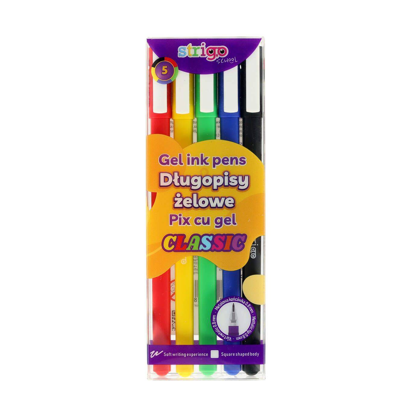 Odkryj Długopisy Żelowe Strigo w klasycznych kolorach takich jak niebieski, różowy i zielony – idealne narzędzie dla kreatywnych uczniów i studentów.