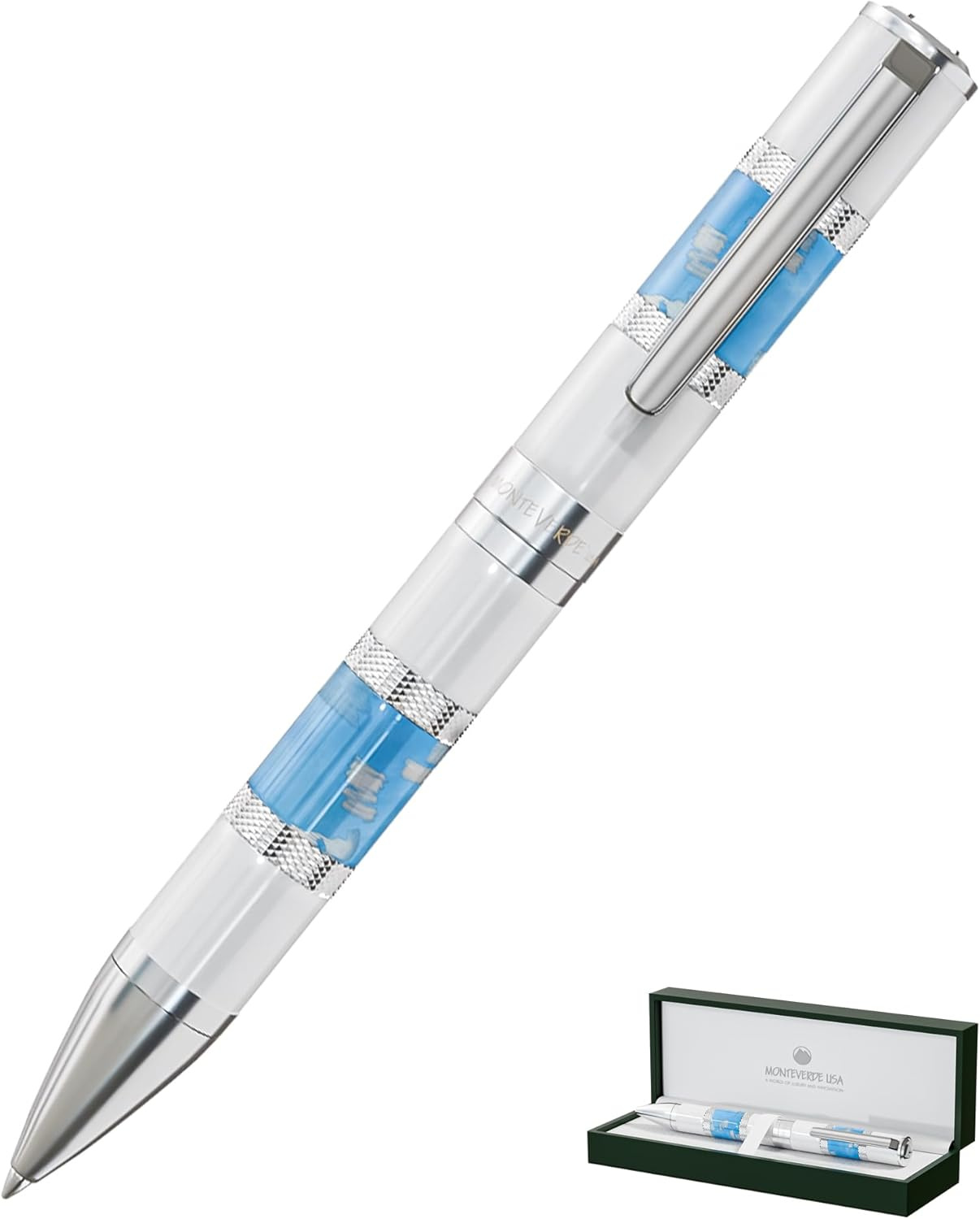 - Materiały najwyższej jakości: Długopis Monteverde USA Regatta Sport w kolorze Santorini White and Blue jest wykonany z wysokiej jakości żywicy europejskiej, dzięki czemu jest trwały i ma luksusowy wygląd.