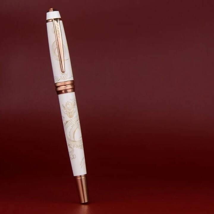 Pióro Bailey Year of the Dragon posiada biały korpus z wygrawerowanym smokiem w kolorze złotym. Wykończenia są koloru różowo-złotego.