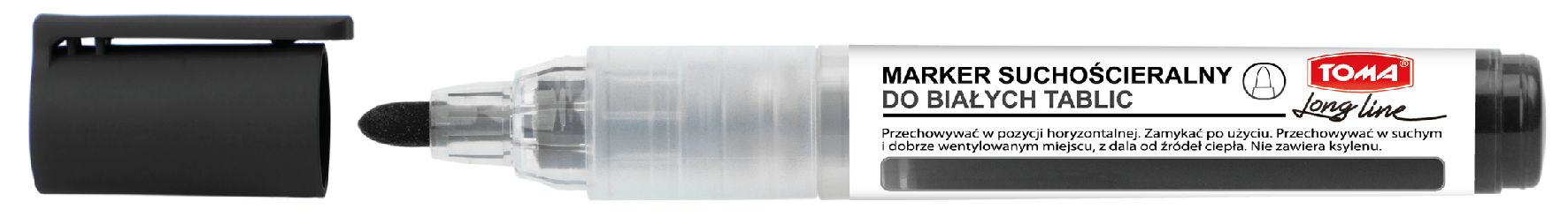 Marker suchościeralny TO-265 do pisania po białych tablicach o wyjątkowo długiej linii pisania 1000 m, grubość linii 3 mm, wzmocniona okrągła końcówka, widoczny płynny tusz, nie zawiera ksylenu.