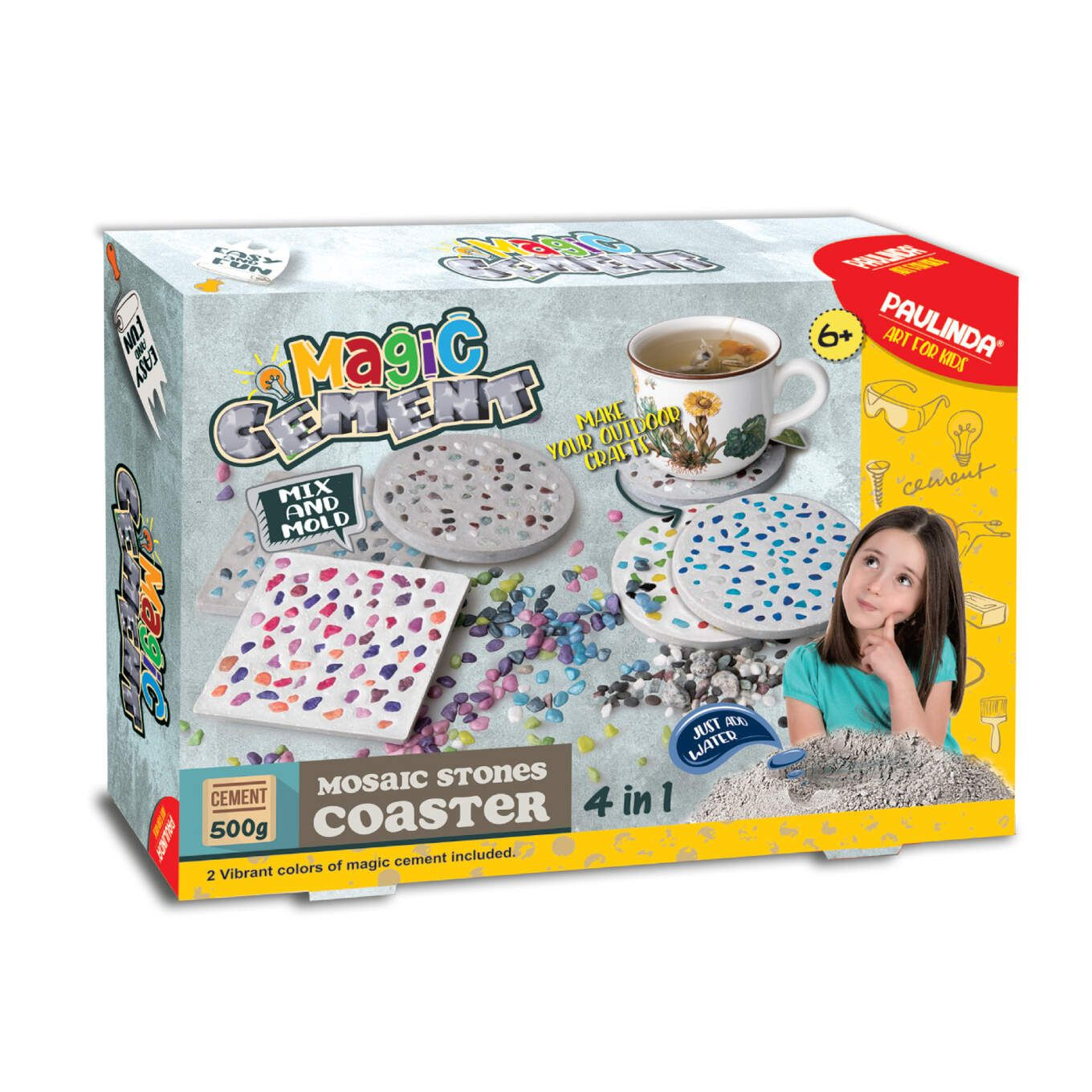 Zestaw zawiera wszystko, czego potrzeba do stworzenia wspaniałych cementowych podkładek: magiczny cement, plastikowe formy, pigmenty, kolorowe kamyczki, pędzelek, miseczkę, paletkę, wodoodporną matę, rękawiczki oraz formę PVC. Dzięki szczegółowej instrukcji użytkowania cały proces jest bezpieczny i prosty do wykonania, dając dzieciom radość z tworzenia trwałych, własnoręcznych podkładek.
