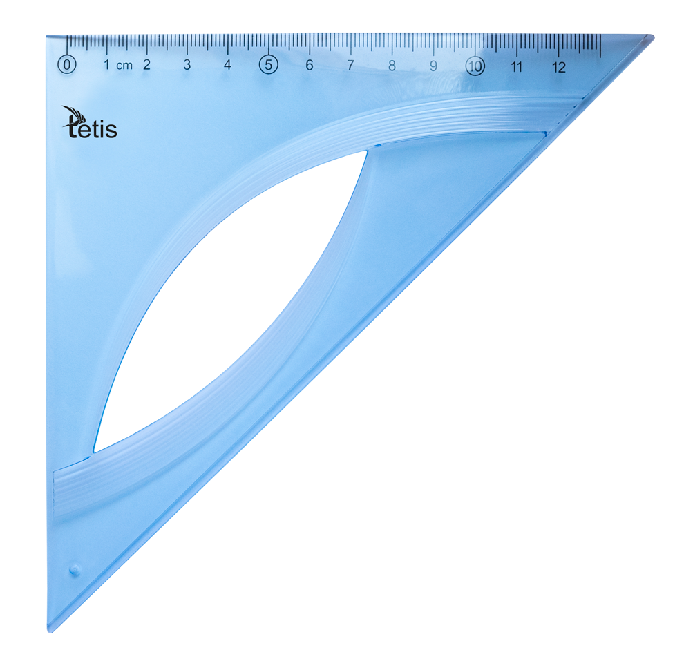 Ekierka równoramienna 13cm wykonana z przezroczystego tworzywa z wyraźną skalą.