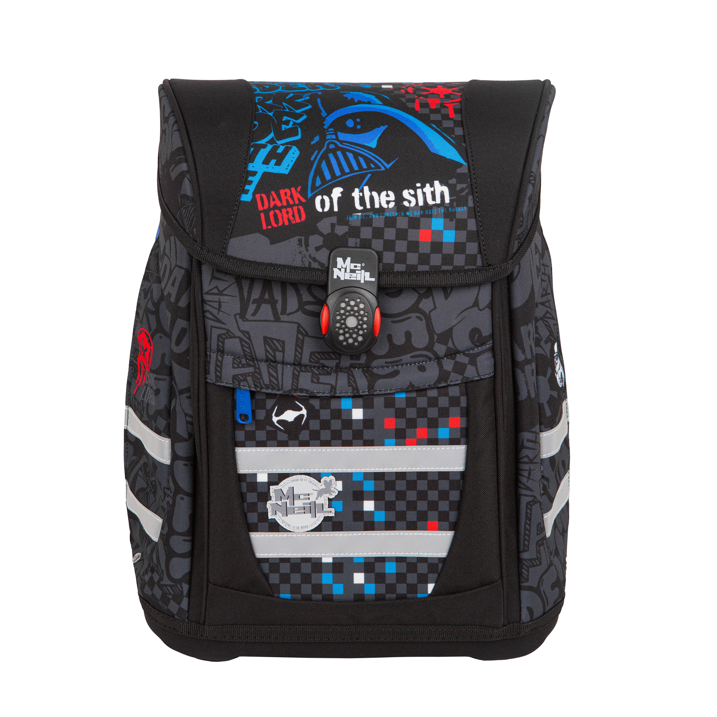 Zestaw McNeill TENERIS zawiera wyściełaną saszetkę, piórnik i torbę na buty sportowe. Posiada oddychający system Air-Flow Back i odpinany pasek piersiowy. Dwie kieszenie boczne są zapinane na suwak i mają magnetyczne zapięcie obsługiwane jedną ręką. Wewnątrz znajduje się wyściełana przegroda na książkę.