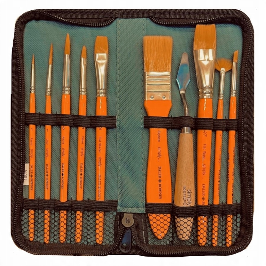 Zestaw 9 pędzli ze szpachelką Simply w etui