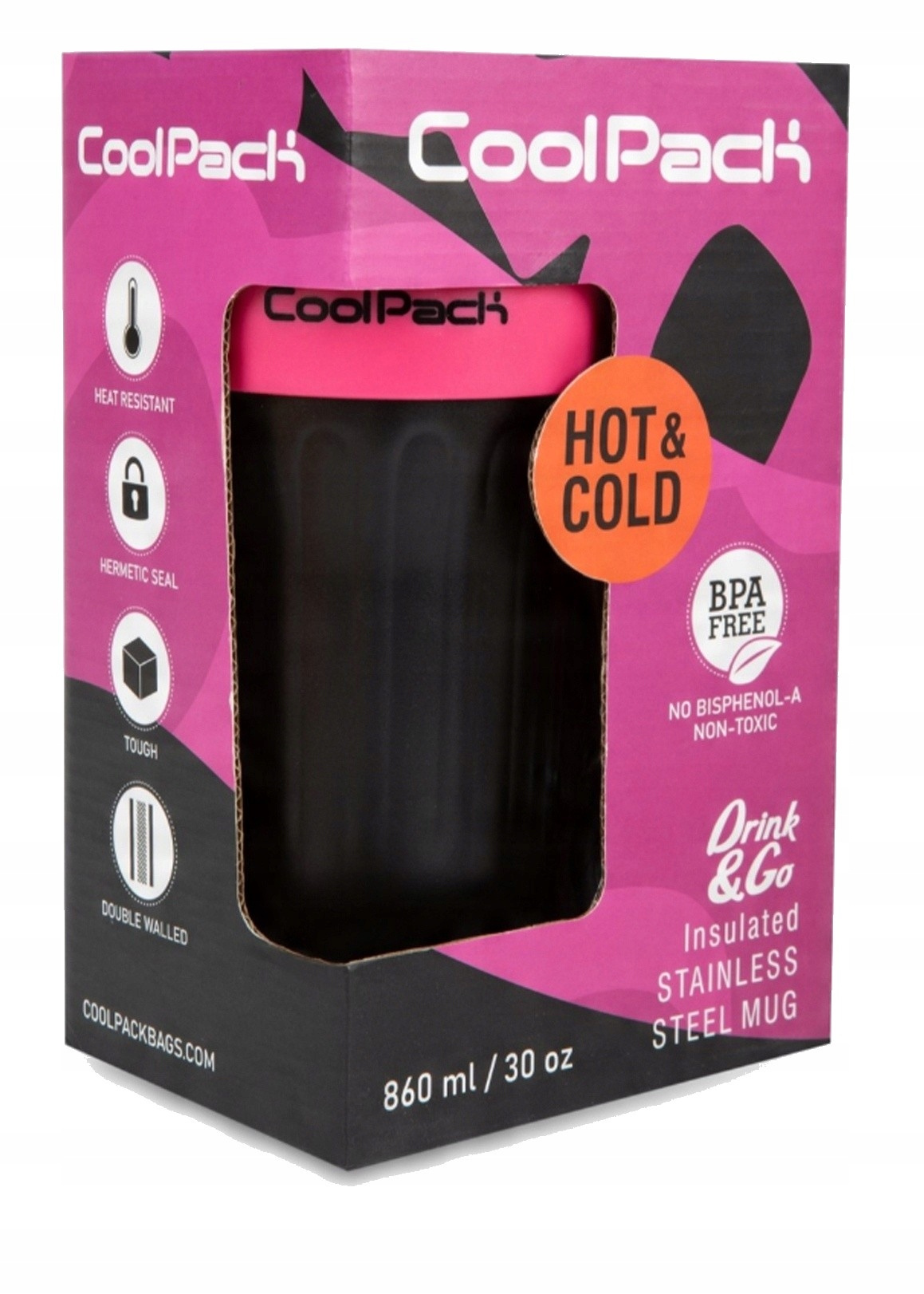 Wykonany z wysokiej jakości stali nierdzewnej, ten pojemny kubek o pojemności 860 ml zapewnia doskonałe utrzymanie temperatury dzięki podwójnym ściankom.