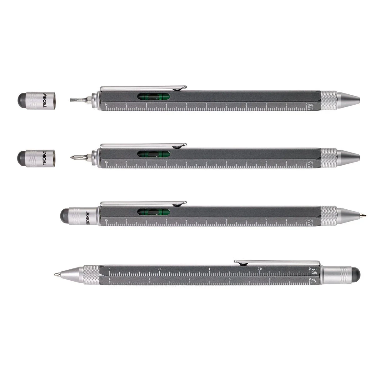 - Wielofunkcyjny długopis z linijką 10-centymetrową i 4-calową, poziomicą i małym śrubokrętem